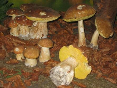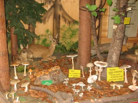 Vsi razstavni eksponati so lično izdelani iz umetne mase ter neverjetno podobni originalom rastočim v naravi. V muzeju se naučite, katere gobe so užitne in v katerem letnem času jih lahko nabiramo. Razstavne površine so izdelane z namenom predstaviti čimbolj naravno rastišče gob, zato so na njih predstavljene tudi različne gozdne živali, kot so fazani, lisice, sove, kune, srne, zajci itd.