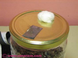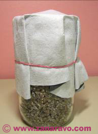UPORABA Uporaba je popolnoma enostavna, saj je v kozarec potrebno vnesti le kulturo ali spore glive ter jih enakomerno vmešati v substrat, da se zagotovi enakomerno preraščanje. Najbolj zanesljiva je uporaba spor v injekciji napolnjeni s sterilno vodo, katere vbrizgamo skozi za ta namen prirejen del pokrova kozarca. Po injiciranju spor luknjico nastalo zaradi injekcije enostavno zalepimo ter s tem preprečimo vnos nezaželenih mikroorganizmov v substrat. Faza nanašanja spor ali glivne kulture na substrat mora potekati v sterilnem okolju - najenostavneje kar ob plamenu kuhinjskega štedilnika ali alkoholnega gorilnika. Pri sobni temperaturi se razvije podgobje, katero v nekaj tednih popolnoma preraste substrat (Slika 4). Ko je substrat popolnoma preraščen, ga uporabimo za inokulacijo različnih podlag za gojenje gob kot so na primer: - slama (ostrigarji (Pleurotus sp.), kukmakova strniščnica (Stropharia rugosoannulata), topolovka (Agrocybe aegerita)); - lesni sekanci ali žaganje (ostrigarji (Pleurotus sp.), kukmakova strniščnica (Stropharia rugosoannulata)); - masiven les (šitake – japonske nazobčanke (Lentinula edodes), ostrigarji (Pleurotus sp.), pološčenka (Ganoderma sp.), velika zraščenka (Grifola frondosa), bradovci (Hericium sp.), topolovka (Agrocybe aegerita), zimska panjevka (Flammulina velutipes); - kompost (kukmaki (Agaricus sp.), tintnice (Coprinus sp.); - umetno pripravljen substrat (šitake (Lentinula edodes), ostrigarji (Pleurotus sp.), pološčenke (Ganoderma sp.), velika zraščenka (Grifola frondosa), bradovci (Hericium sp.), topolovka (Agrocybe aegerita), zimska panjevka (Flammulina velutipes). V primeru gojenja kukmakov in vrst gob s podobnimi zahtevami je moč substrat uporabiti namesto komposta ter nanj po končani inkubaciji nanesti krovno prst, ki spodbuja snovanje zametkov gob in zagotavlja njihovo rast.